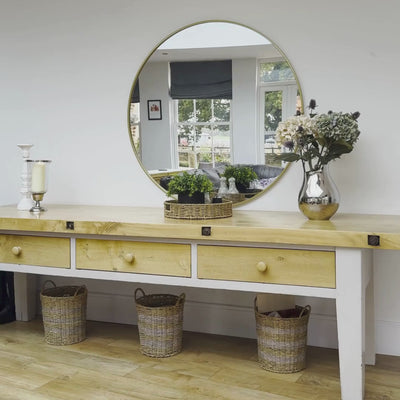 - Hang above a radiator cover or sideboard for a clean focal point that helps reflect light around your room.